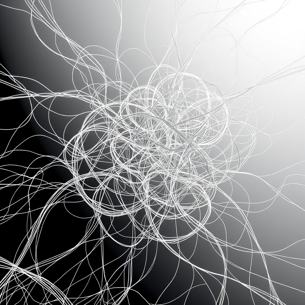 Create a mesmerizing Line Art piece depicting the concept of 'harmony in chaos'. Show intricate intertwining lines forming a chaotic scene that subtly reveals a sense of tranquility and order within the complexity. Let the composition exude a balance between intricacy and simplicity, capturing the beauty that emerges from disorder.